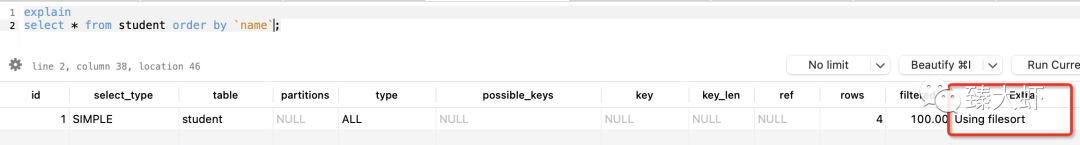 order by 的字段没有索引,mysql 无法利用索引完成的排序,称为文件排序,这样的 sql 都是需要优化的
