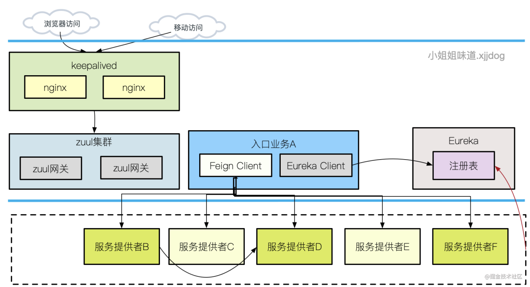 其中,我们优化的目标,就处于一个比较靠上游的服务。它需要通过Feign接口,调用下游非常多的服务提供者,获取数据后进行聚合拼接,最终通过zuul网关和nginx,来发送到浏览器客户端。