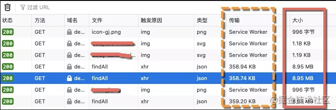 压缩率有多惊人呢?我们可以看一下这张截图。可以看到,数据压缩后,由8.95MB缩减到了368KB!瞬间就能够被浏览器下载下来。
