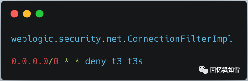 顺便值得一提的是,我们探测t3/iiop协议的时候,还需要探测它们是否被设置为禁止连接,不然探测出open也是无法利用的。如上图的t3开启了但是配置了如下过滤。