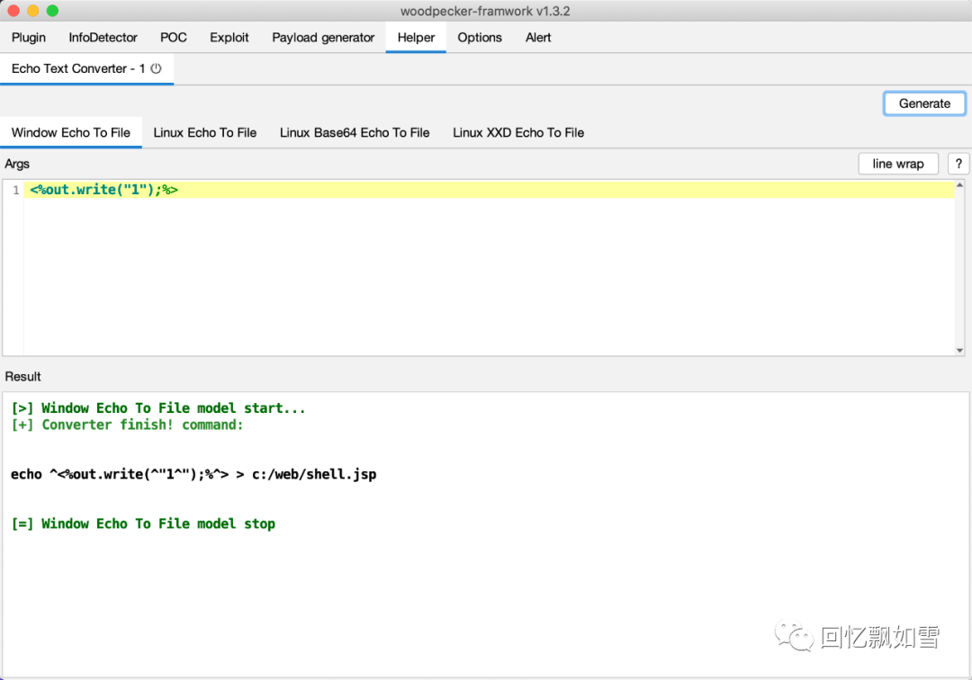 同时如果想通过命令执行漏洞写一个shell的话,往往需要转义下,这个过程也是比较繁琐的。可以使用EchoToFileConverter插件来解决。