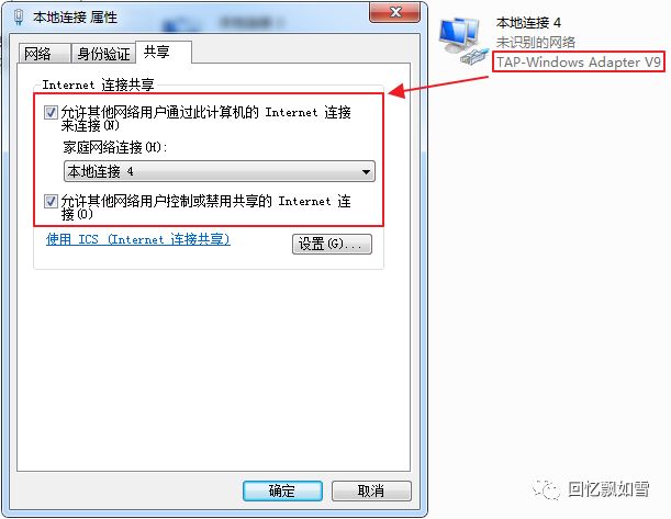 设置跳板服务器用于访问目标站点的网卡共享给OpenVPN的虚拟网卡TAP-Windows Adapter V9,这步很重要!