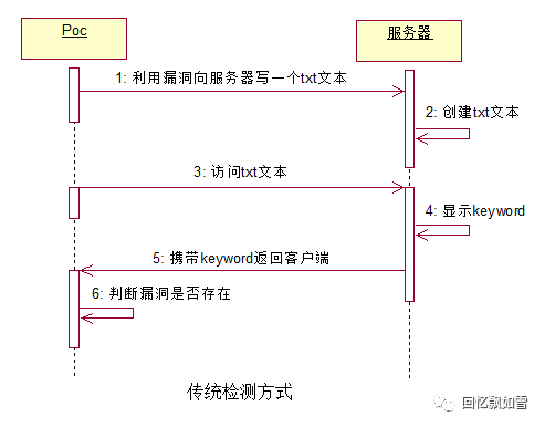 。然后再访问该文本,如果该文本存在,且内容为keyword则说明漏洞存在。这是传统的检测方式。