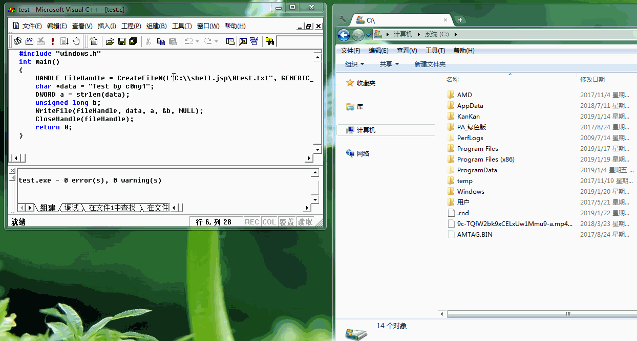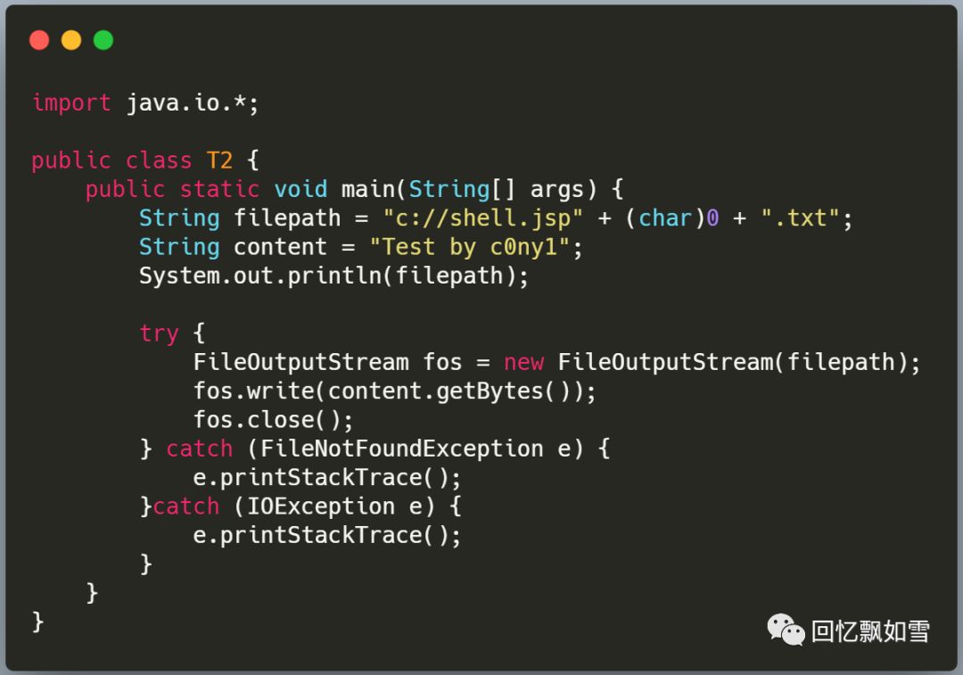 通过在漏洞版本和非漏洞版本运行以上代码,可知如果00截断成功,则会在系统的c盘根目录新建一个内容为Test by c0ny1的shell.jsp,如果没有截断成功,则抛出Invalid file path异常。