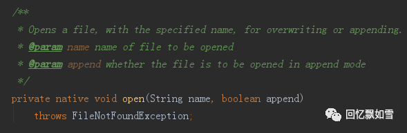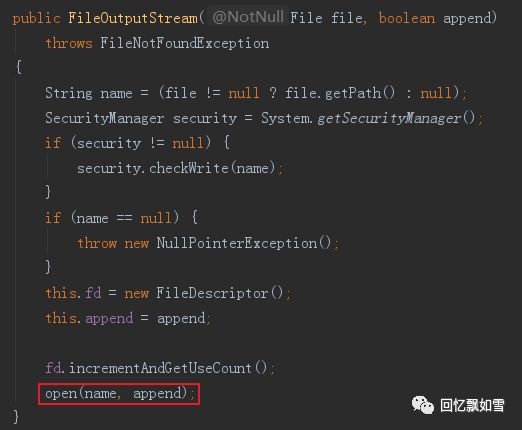 FileOutputStream对象的构造方法又调用了open函数,打开了name参数传进来的文件路径,我们继续跟进open函数。