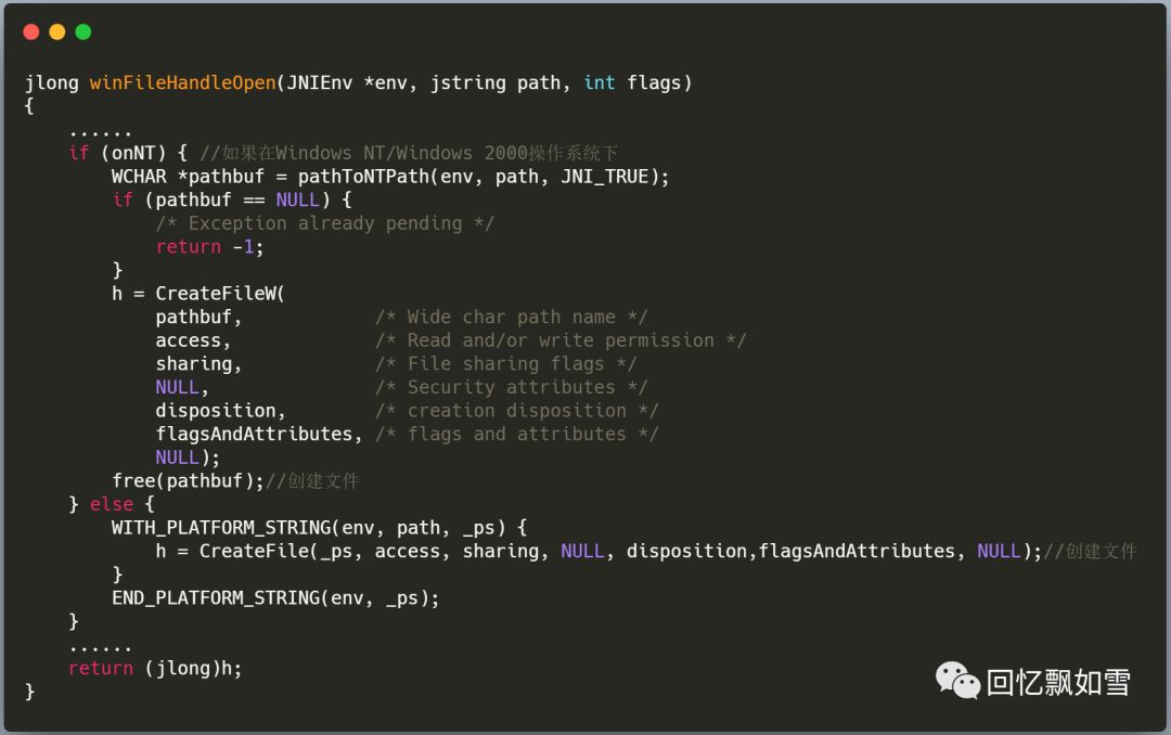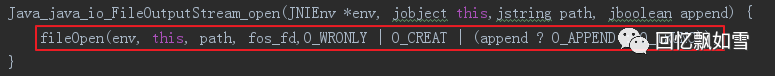 \openjdk\jdk\src\windows\native\java\io\FileOutputStream_md.c找到了FileOutputStream类的open方法的JNI实现。open方法又调用了fileOpen方法,继续跟进fileOpen方法。