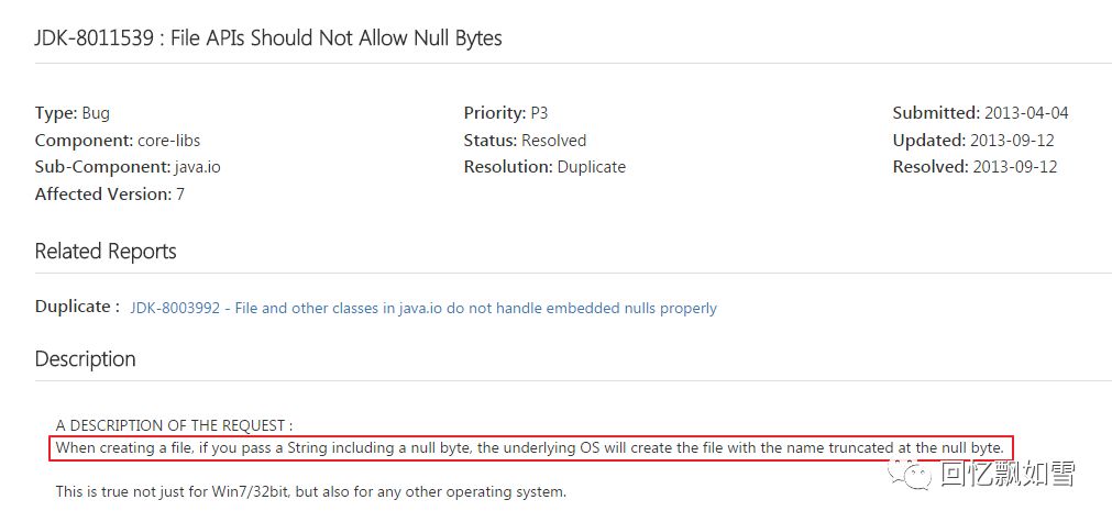 后面在官网的JDK 7u40的更新日志中也找到了关于00截断问题Bug ID,分别为JDK-8003992和JDK-8011539,具体链接放在了文末的参考文章里了。其实这两个是同一个Bug,官网也说明了它们重复了。