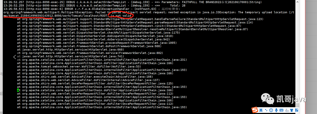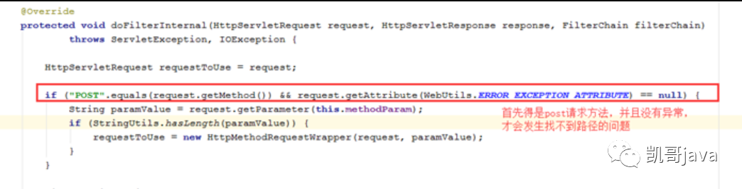 咱可以在开发环境下debug跟踪问题原因呀,首先我想到的是在DispatcherServlet 的doService(…)方法下看看request.getParts()的路径发现是C:\Users\user\AppData\Local\Temp\tomcat.4632713886902697899.8080\work\Tomcat\localhost\ROOT,然后把目录删掉,再进doService(…)方法看,结果发现已经抛出异常了,那这个好说,一层层往上找,最后在ApplicationFilterChain(应用拦截链)的internalDoFilter(内部过滤器)方法中,当执行完过滤器HiddenHttpMethodFilter(隐藏Http请求方法过滤器)时,发现又报错了,那咱就锁定HiddenHttpMethodFilter了,首先发现请求必须为post方式并且没有异常才会发生上面那错,