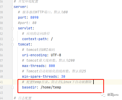 3.在配置文件中加入这个 server.tomcat.basedir=/XXX/XXX/XXX(自定义目录-网上看到的,验证了下启动时会自动创建该目录/XXX/XXX/XXX/work/Tomcat/localhost/ROOT)
