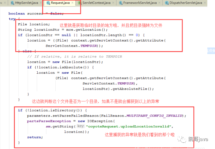 那咱再继续往下看,就可以看到获取目录的地方,它将临时目录强转为文件,并且判断这个文件是否为一个目录,如果不是,就会捕获上面的异常,在后续抛出。
