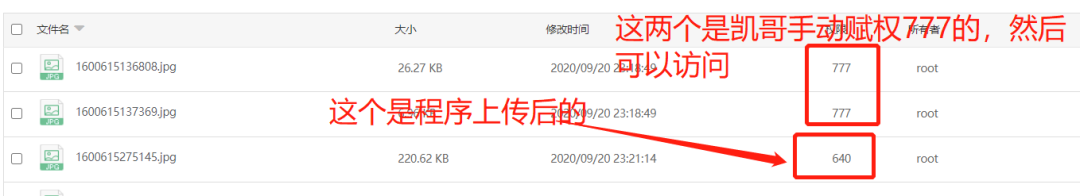 #如果是0027的话,文件上传后,权限640,图片域名访问不到。需要修改