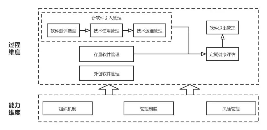 评估对象为使用开源软件的企业用户。开源软件的广泛使用也从安全和合规角度对企业的开源治理能力提出了更高的要求。针对企业用户在使用开源软件时面临的风险,重点考察企业在组织机制、管理制度、风险管理、软件测评选型、技术使用管理、技术运维管理、定期健康评估和软件退出管理等方面的能力。根据企业开源治理水平实际所处的不同阶段,将划分为基础级、增强级和先进级。