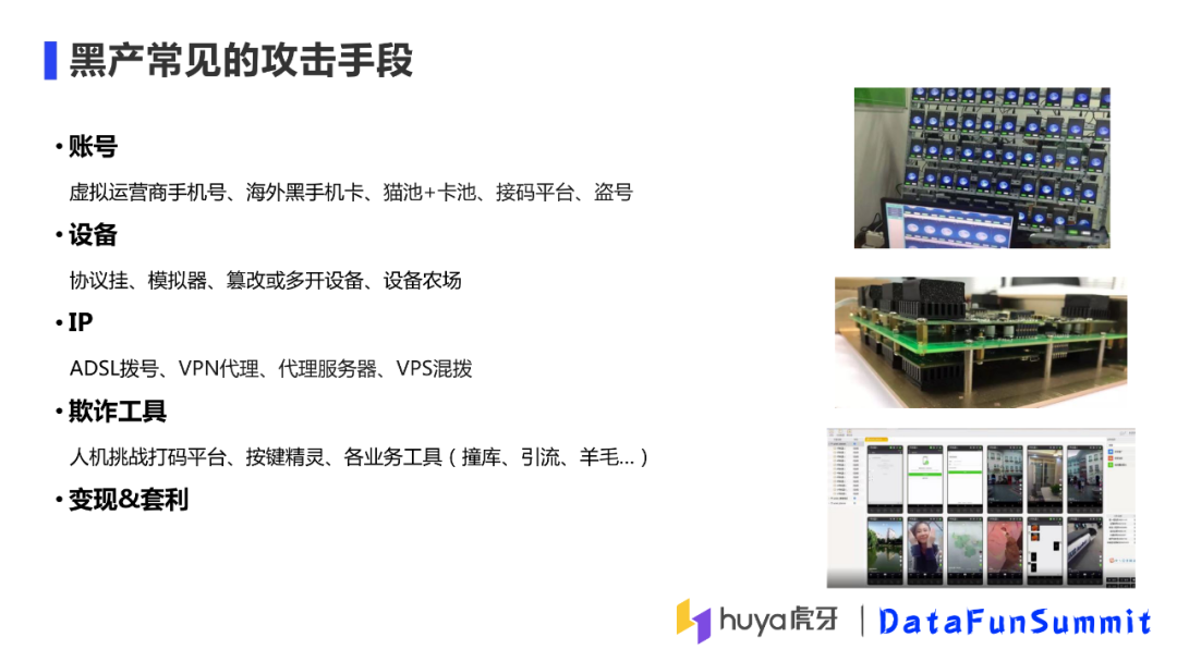 导读:本文的主题为无监督算法在虎牙风控的探索实践,首先会简单介绍虎牙主要的业务场景以及存在的风险,其次是黑产常见的攻击技术手段以及传统应对方法的不足。第二部分会分享无监督算法在虎牙风控中的落地实践,详细介绍我们如何从全局出发挖掘数据之间的关联,并结合聚类技术发现黑产的攻击模式。