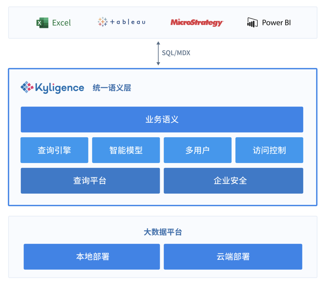 语义层的重要价值就是让企业内不同业务的分析人员都能统一访问同一套业务语义。那么,如果语义层仅能在某个固定厂商软件中使用,而不能对接丰富的各种生态,落地时就会遇到重重阻碍。尤其是云原生架构日趋成为主流选择,企业的数据往往存储在本地和云端等不同地方。支持云上部署的语义层正满足了当下企业云端部署的诉求,也是未来 IT 架构的发展趋势。