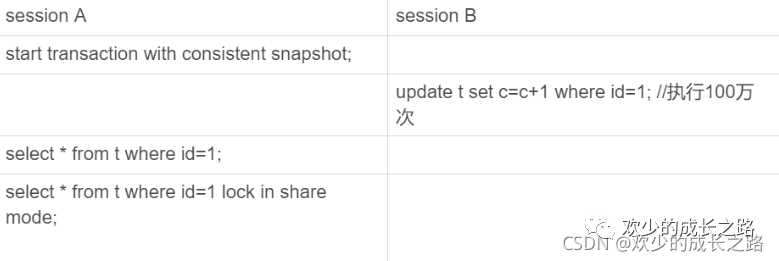 并且加读锁查询。sessionB在sessionA开启一个事务之后执行更新操作