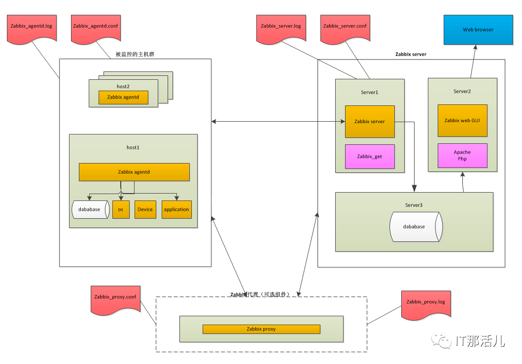 Zabbix server:是整个Zabbix软件的核心程序,Server通过轮询和捕获数据,计算是否满足触发器条件,向用户发送通知。是agent程序报告系统可用性、系统完整性和统计数据的核心组件,是所有配置信息、统计信息和操作数据的核心存储器;