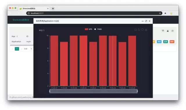 在解决如何对客户端实例的健康状况进行检查时,利用的是Redis的过期时间与客户端发送的心跳包(发送心跳时再进行延期)。比较不错的一点是,该项目提供基于前端Echarts图表的QPS视图展示,如下图。