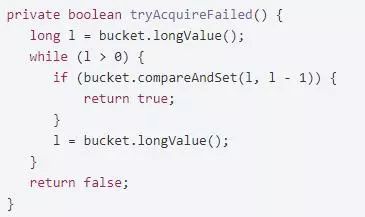 本地限流的实现可以用Long长整型作为令牌桶,为了达到无锁,建议使用Long的原子类型AtomicLong,使用AtomicLong的好处就是可以非常方便的对其进行CAS加操作与CAS减操作(也就是令牌桶令牌的放入与拿取),以避免线程的上下文切换的开销,核心CAS算法如下: