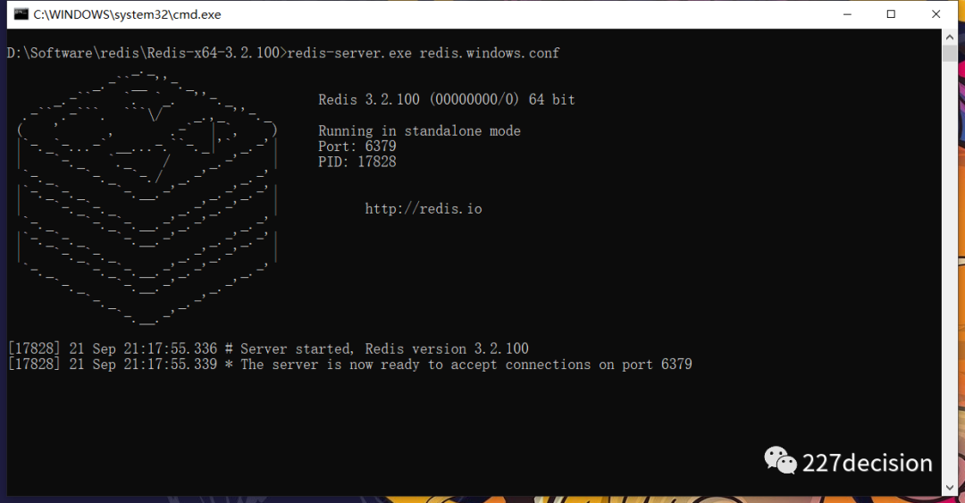 双击redis-server.exe,启动成功界面如上图,如果一闪而过,则需要处理