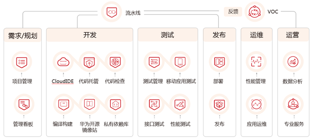 华为云 DevCloud 提供一站式、全流程、安全可信的 DevOps 平台,集华为 30 年研发实践、前沿研发理念、先进研发工具为一体,面向开发者提供研发工具服务,让软件开发简单高效智能。