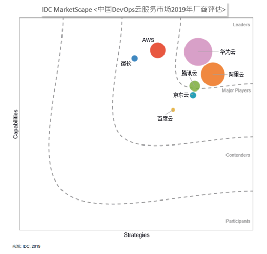 IDC 认为“华为云在 2019 年中国 DevOps 云服务市场厂商评估中处于领导者位置。”