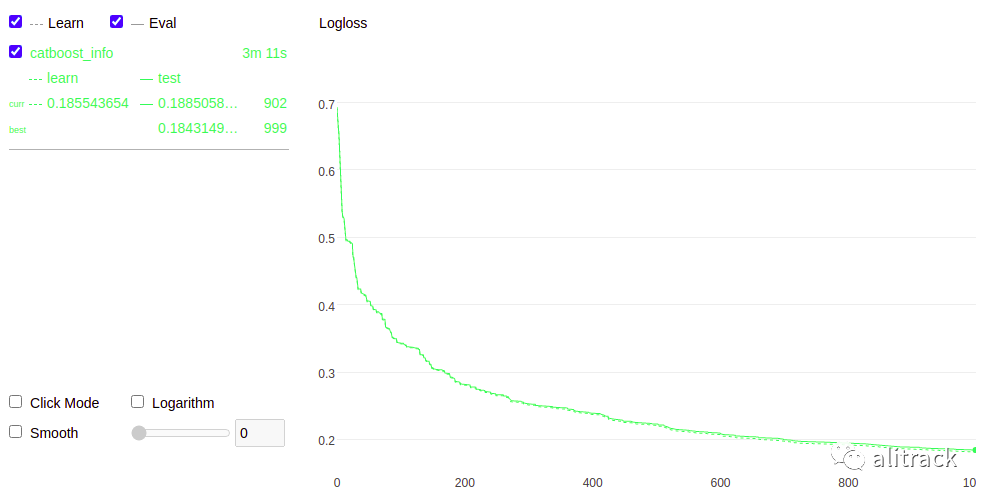 在这里,CatBoost 分类器使用超参数进行训练,以加快训练的执行速度。在本文中,我们不会关注这些参数的调整,也不会关注模型的性能。