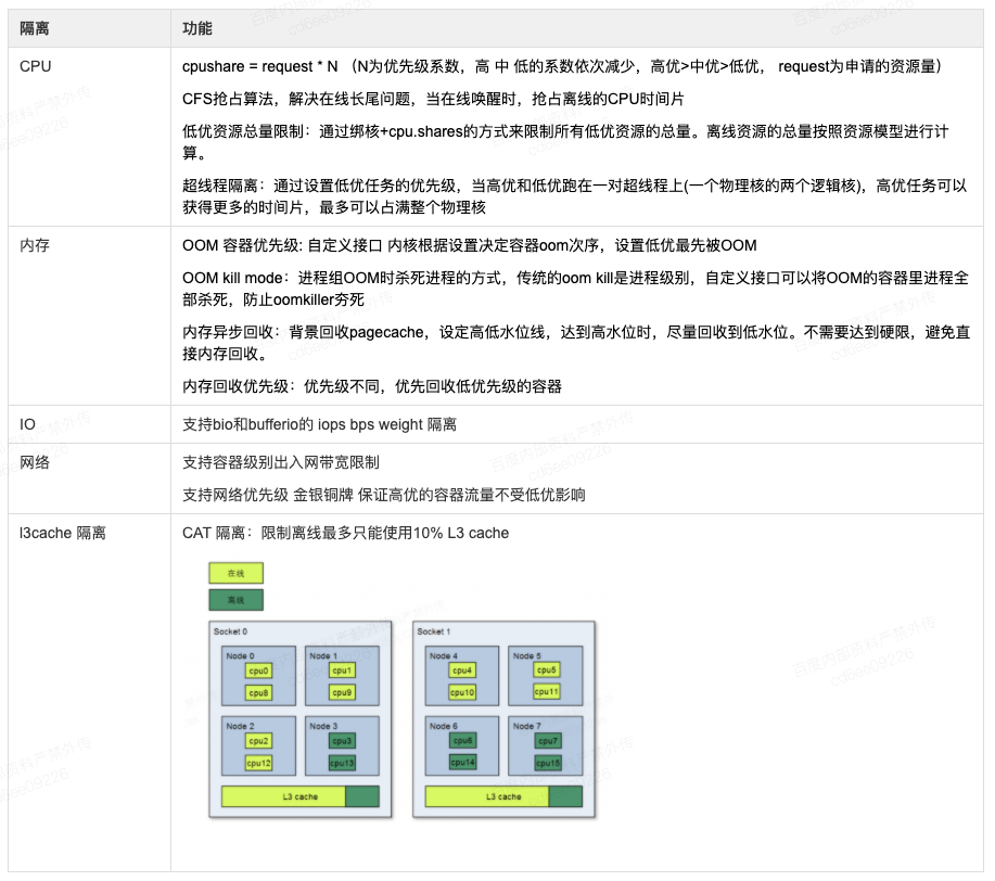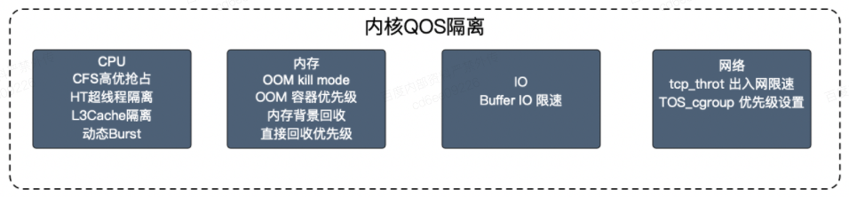 但是对于一些长尾延迟来说,仅仅通过上述 Kubernetes 的手段,保证不了服务质量。发生争抢时,系统 load 就会比较高。所以团队引入了内部的一些内核功能,并且对它进行一些扩展和支持,基本包括以下几类: