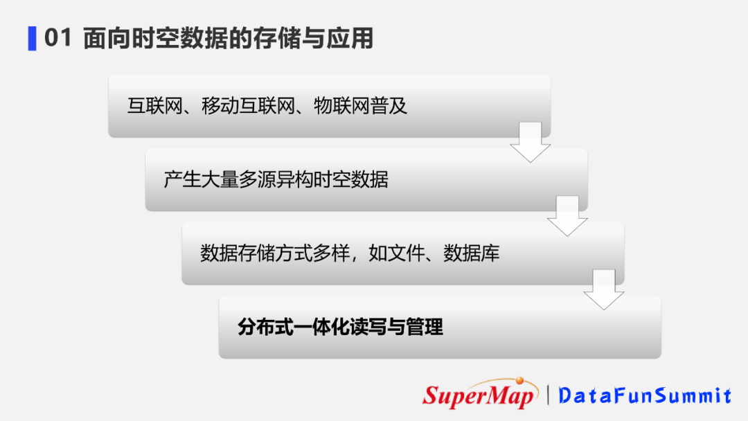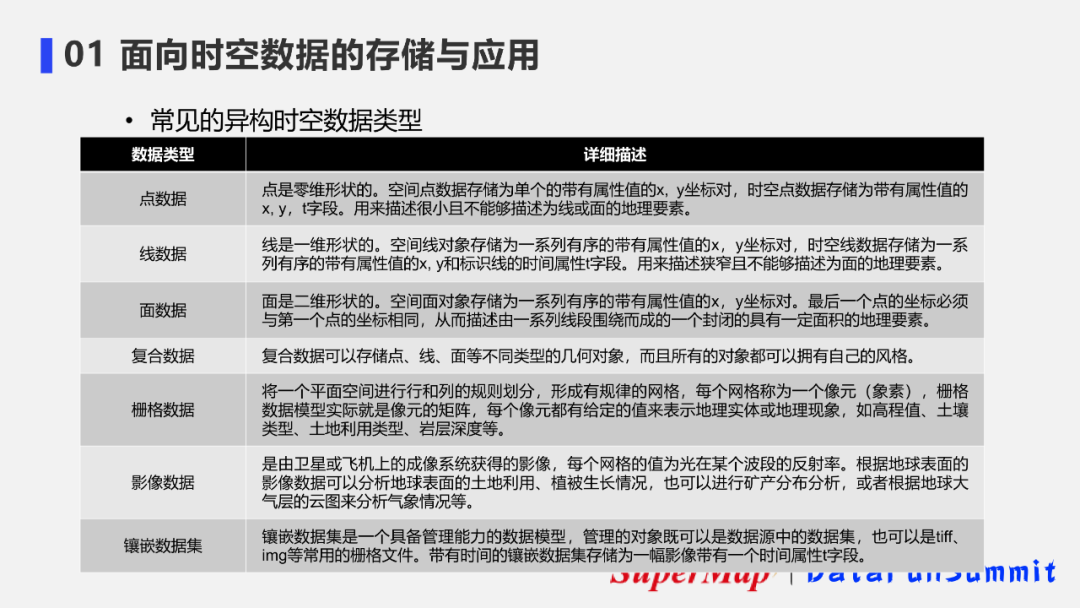 我们知道超大规模的时空数据因飞速发展的互联网、移动互联网、物联网普及而产生。这些数据往往具有多源异构的特性,因其结构不同,特性也不同,往往还以不同的数据存储类型存储,如文件型、数据库等形式。