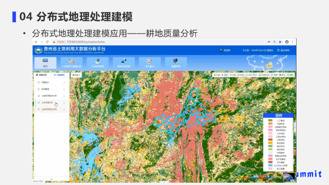 另一个分布式地理处理建模的应用案例:贵州省大数据分析平台上的耕地质量分析业务。