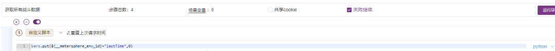 2. 将接口导入开源持续测试平台MeterSphere,测试接口,并提取所需参数,通过后置的Python脚本处理数据;