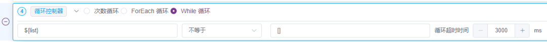 5. 然后创建一个While类型的循环控制器,内容如下,表示的是当list变量不为空时,就一直循环,每次循环这个值都会变;