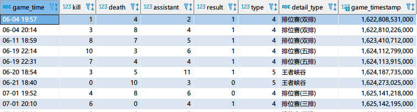 我原本的思路是用Python模拟请求,然后将数据处理完成之后存到数据库中。目前需要的数据主要有三个:一个是账号的总体数据,一个是英雄数据,最后是战斗数据。