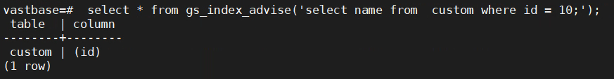 如:使用索引推荐的接口函数gs_index_advise()对单条查询SQL分析,得出推荐索引的表名和字段名。