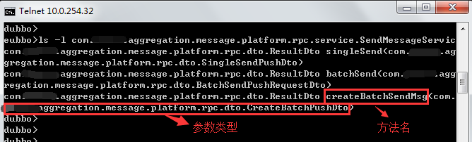 3、ls -l 接口名 查看该接口方法列表,获取方法名和参数类型