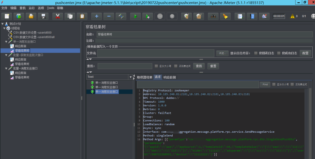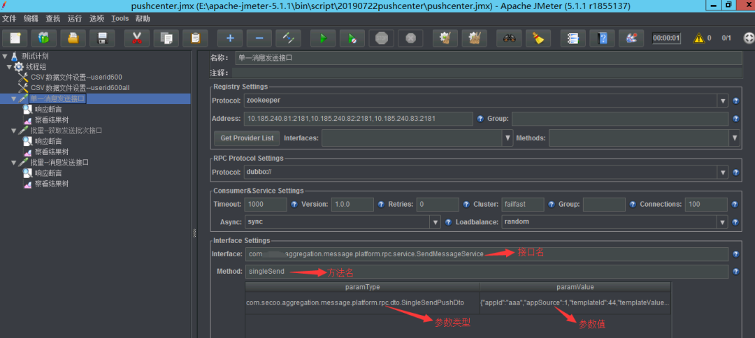 invoke调试通过后将参数填入到jmeter dubbo sample中