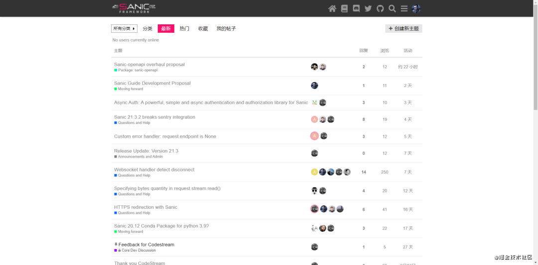 Sanic 目前常用的有 论坛、Discord、github issues、twitter、Stackoverflow.....