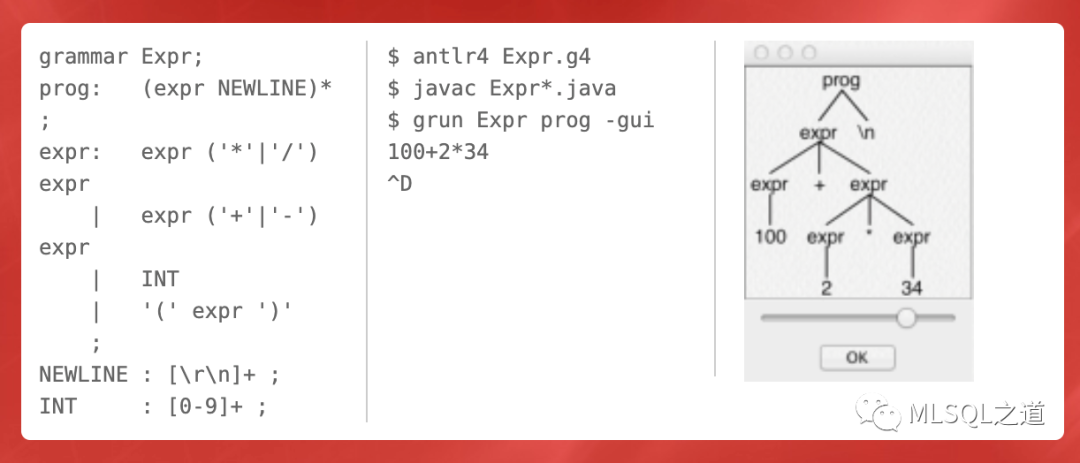 Parser:parser是将输入文本转换为ast(抽象语法树),parser有包括两个部分,Parser和Lexer,其中Lexer实现词法分析,Parser实现语法分析;
