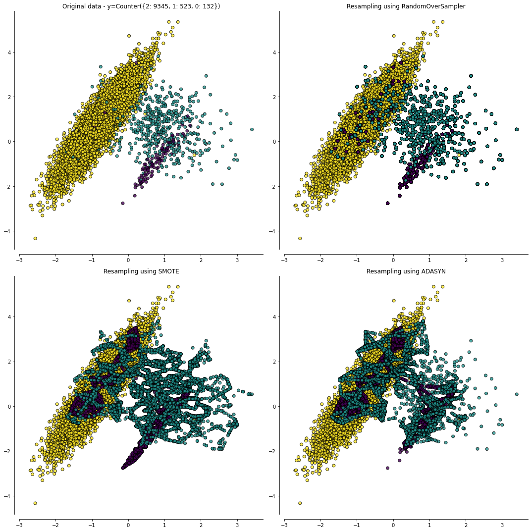 不同过采样方法之间的量化比较: https://imbalanced-learn.readthedocs.io/en/stable/auto_examples/over-sampling/plot_comparison_over_sampling.html#sphx-glr-auto-examples-over-sampling-plot-comparison-over-sampling-py