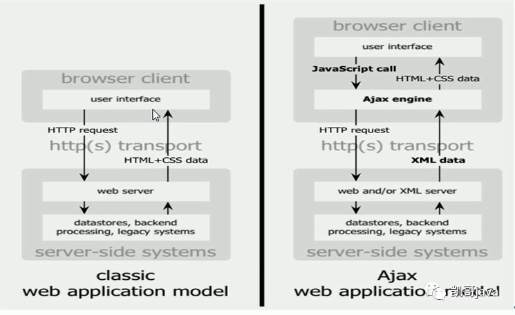 Ajax就是上面四个单词缩写,主要是看第一个单词,异步的,Asynchronous,相反肯定有同步的概念。