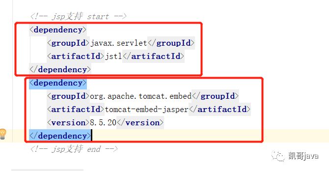 在pom.xml文件中,添加对jsp的支持依赖包: