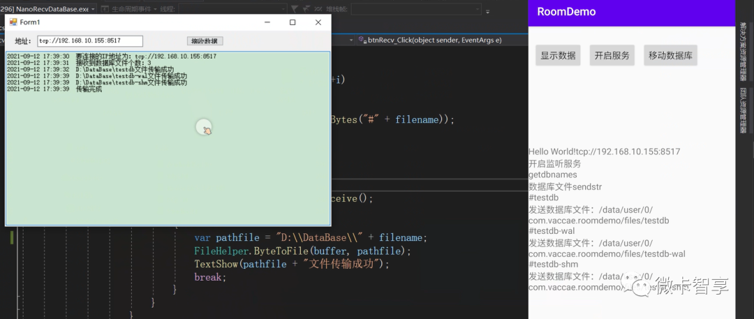 using nanomsgclient;using NNanomsg.Protocols;using System;using System.Collections.Generic;using System.ComponentModel;using System.Data;using System.Drawing;using System.Linq;using System.Text;using System.Threading;using System.Threading.Tasks;using System.Windows.Forms;namespace NanoRecvDataBase{public partial class Form1 : Form{private PairSocket pairSocket = null;public Form1(){InitializeComponent();CheckForIllegalCrossThreadCalls = false;_tbMsg = tbMsg;}#region 文本框操作//定义文本框private static TextBox _tbMsg;//定义Actionprivate Action<string> TextShowAction = new Action<string>(TextShow);//定义更新UI函数private static void TextShow(string sMsg){//当文本行数大于500后清空if (_tbMsg.Lines.Length > 500){_tbMsg.Clear();}string ShowMsg = DateTime.Now + " " + sMsg + "\r\n";_tbMsg.AppendText(ShowMsg);//让文本框获取焦点_tbMsg.Focus();//设置光标的位置到文本尾_tbMsg.Select(_tbMsg.TextLength, 0);//滚动到控件光标处_tbMsg.ScrollToCaret();}#endregionprivate void btnRecv_Click(object sender, EventArgs e){try{if (pairSocket == null){pairSocket = new PairSocket();var ipadr = tbipadr.Text;TextShow("要连接的IP地址为:" + ipadr);pairSocket.Connect(ipadr);}var res = new Task<string>(() =>{pairSocket.Send(Encoding.UTF8.GetBytes("getdbnames"));while (true){Thread.Sleep(50);//接收数据byte[] buffer = pairSocket.Receive();if (buffer != null){string recvstr = Encoding.UTF8.GetString(buffer);return recvstr;}}});res.Start();var getdbnum = res.Result;var dbnames = getdbnum.Split('#');TextShow("接收到数据库文件个数:" + dbnames.Length);var resfile = new Task<String>(() =>{for (int i = 0; i < dbnames.Length; ++i){string filename = dbnames[i];pairSocket.Send(Encoding.UTF8.GetBytes("#" + filename));while (true){Thread.Sleep(50);//接收数据byte[] buffer = pairSocket.Receive();if (buffer != null){var pathfile = "D:\\DataBase\\" + filename;FileHelper.ByteToFile(buffer, pathfile);TextShow(pathfile + "文件传输成功");break;}}}return "传输完成";});resfile.Start();TextShow(resfile.Result);}catch (Exception ex){TextShow(ex.Message);}}}}