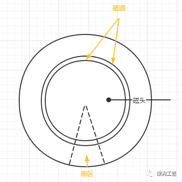 盘片被划分成一系列同心环,圆心是盘片中心,每个同心环叫做一个磁道,所有半径相同的磁道组成一个柱面。磁道被沿半径线划分成一个个小的段,每个段叫做一个扇区,每个扇区是磁盘的最小存储单元。为了简单起见,我们下面假设磁盘只有一个盘片和一个磁头。