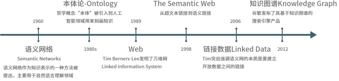 知识图谱并非全新技术和概念,而是多个相关领域不断发展融合的结果(如图2所示),其两个核心基因为人工智能(语义网络、本体)和万维网(语义网、链接数据)。
