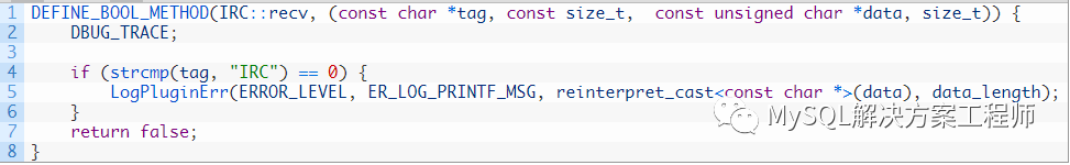 要将带有“ IRC”标签的消息打印到错误日志,我们可以: