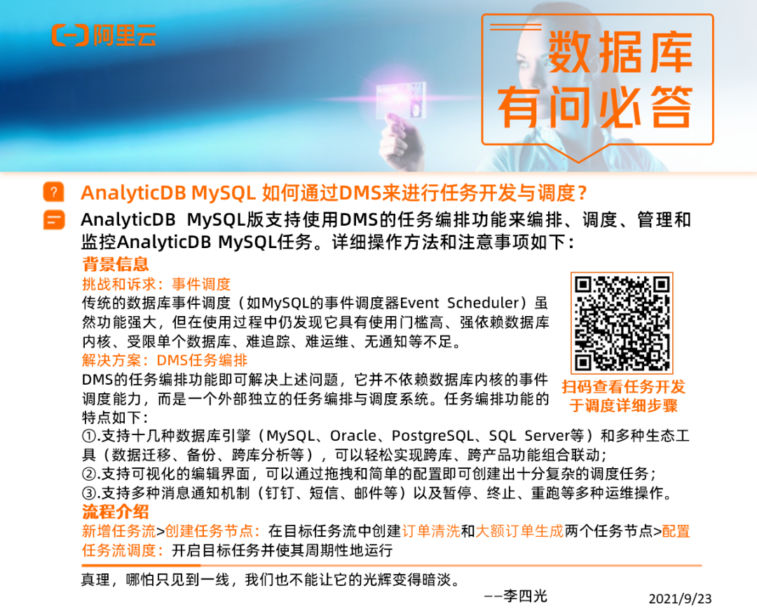DMS的任务编排功能即可解决上述问题,它并不依赖数据库内核的事件调度能力,而是一个外部独立的任务编排与调度系统。