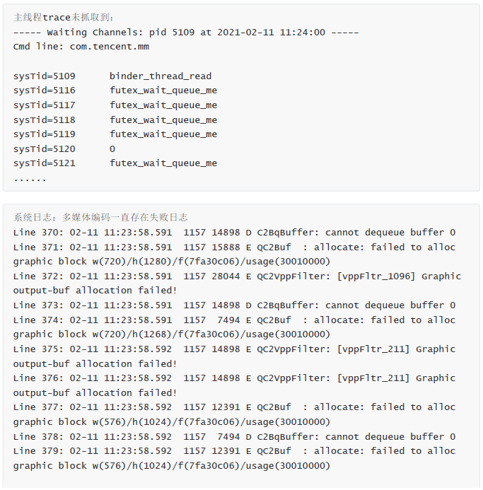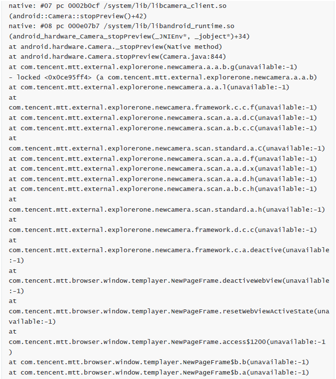 7、系统原因导致:如冻结、温度过高、多媒体(音视频、编解码)、包管理、Block I/O、底层服务NE(native crash)、watchdog、内存黑洞、芯片能力等。