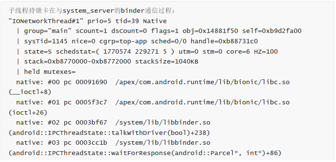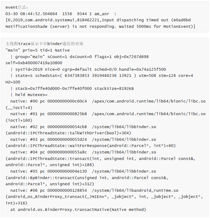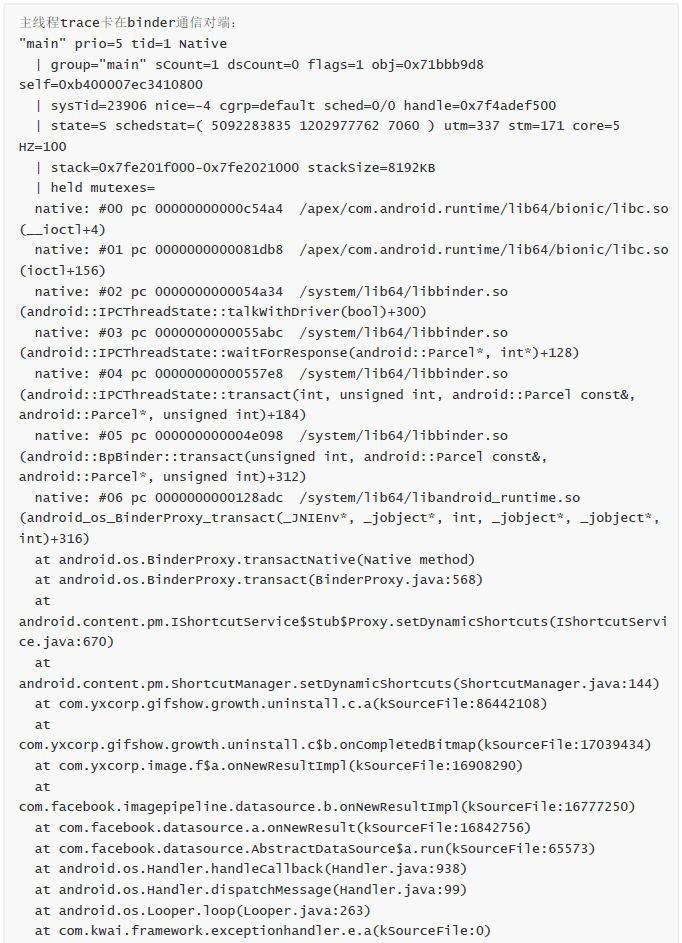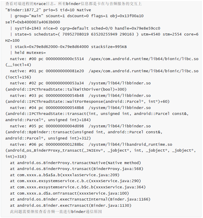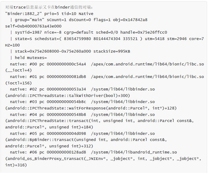 3、主线程卡在binder通信的对端:需要通过binderinfo查看对端信息;