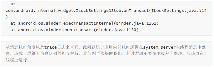 3、主线程在对另一个进程进行同步 binder 调用,而后者需要很长时间才能返回。