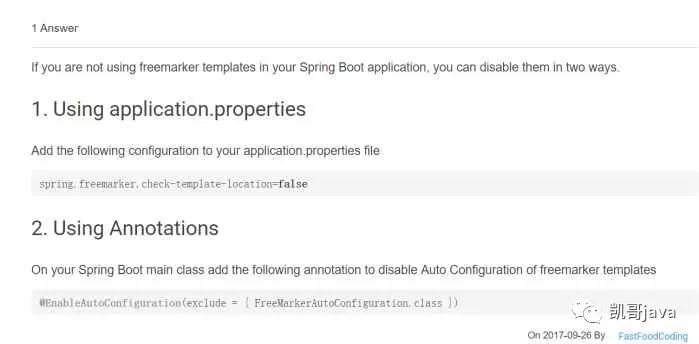 具体解决:在你的spring boot启动类中添加:@EnableAutoConfiguration(exclude = { FreeMarkerAutoConfiguration.class })
