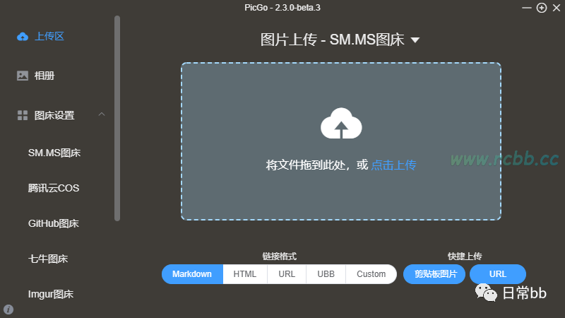 PicGo 一个用于快速上传图片并获取图片 URL 链接的工具;